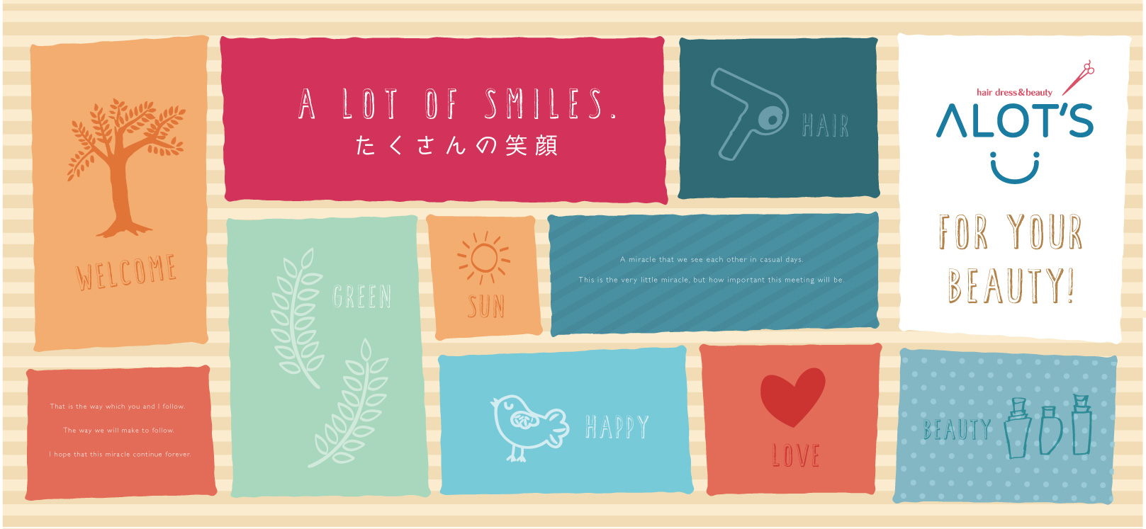 気になるあの人に褒められるヘアスタイルを手に入れて笑顔で毎日を過ごしてほしい。そんな想いのつまった美容院です。
